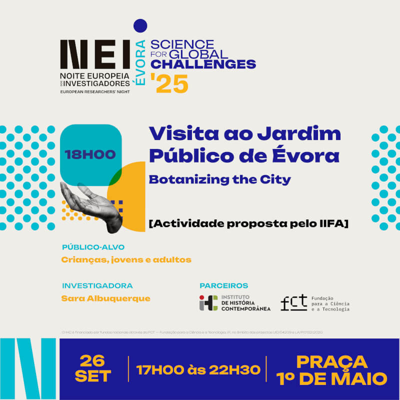 NEI2025-Evora_Actividade04_800x800 Sep 12, 2025 Cartaz da actividade “Visita ao Jardim Público de Évora; Botanizing the City”. NEI 2025