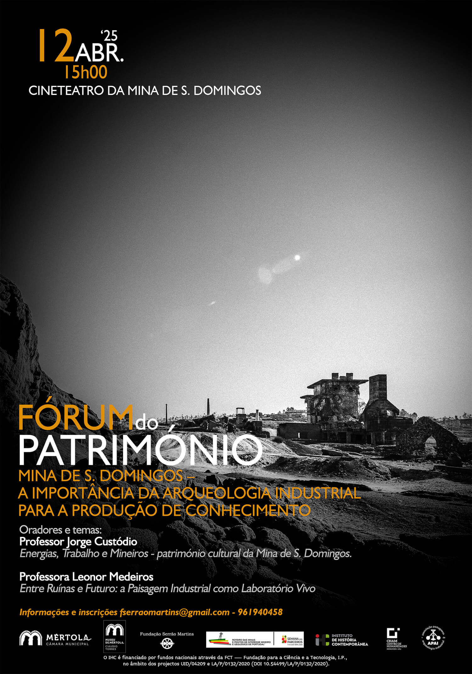 Fórum do Património que tem como objectivo é a valorização da Mina de São Domingos, conjunto mineiro e industrial classificado de interesse público. Mina de São Domingos: A